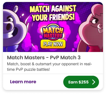 Got a few minutes to play? That’s all it takes to start earning cash! Create a free account and jump into top-paying games right away.