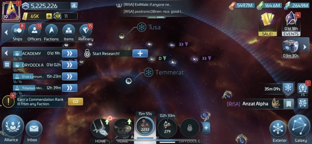 Events are a significant aspect of Star Trek Trek Commander and can be easily missed by players who aren’t paying attention. The game doesn’t notify you often when events are completed, so it’s best to check manually when possible. I recommend checking roughly every 30 minutes to collect any rewards you might otherwise miss.